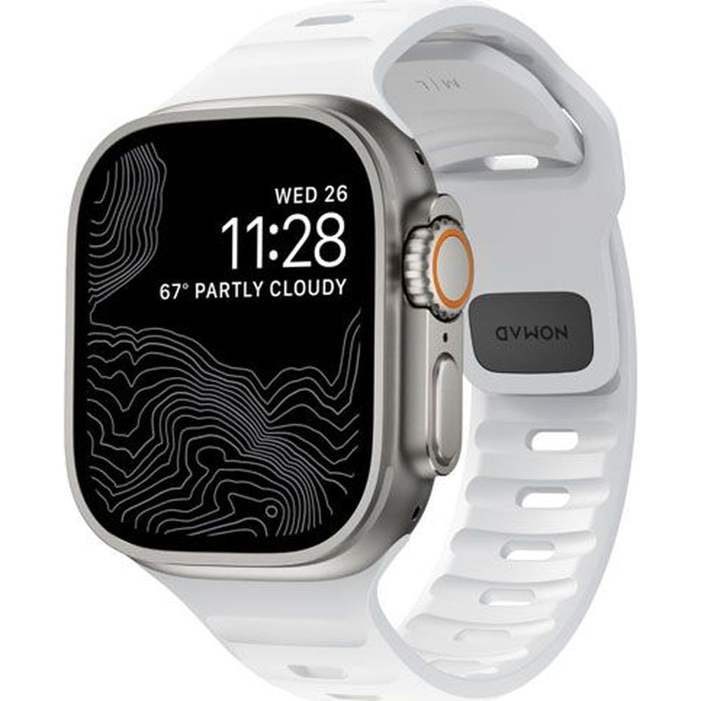 Ein funktioneller Gürtel von Nomad aus der Sport Strap-Reihe, hergestellt aus FKM-Gummi. Das verwendete FKM-Material ist ein Hochleistungs-Fluorelastomer, das in der Automobil- und Pharmaindustrie eingesetzt wird. Es ist leicht und flexibel und erlaubt Ihnen, ein kompromisslos modernes Design zu schaffen.