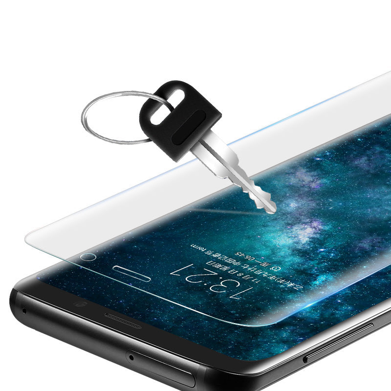 Die 3D-Folie ist präzise an einem bestimmten Telefonmodell angepasst, dabei deckt sie die gesamte Oberfläche des Displays vom Gerät ab, indem sie sich an seine Abrundungen anpasst.