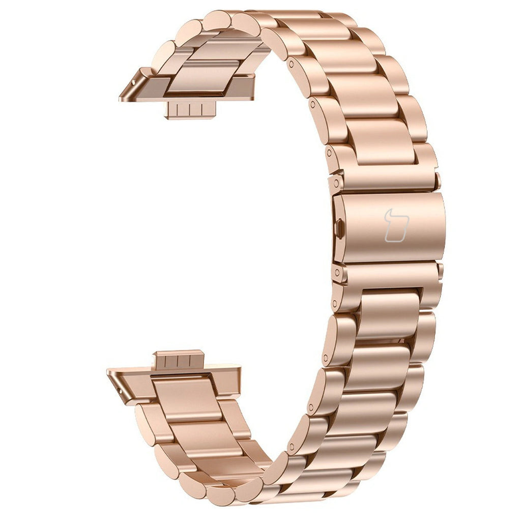 Das Armband ist mit einer traditionellen Schmetterlingsschließe ausgestattet, die sanft zur Haut und diskret ist und das Band elegant und harmonisch aussehen lässt. Das Armband beeinträchtigt die Funktionalität der Smartwatch nicht, und auch die Anbringung selbst wird Ihnen keine größeren Probleme bereiten - einfach die Glieder in die Uhrenhülle einklipsen und schon sind Sie fertig!