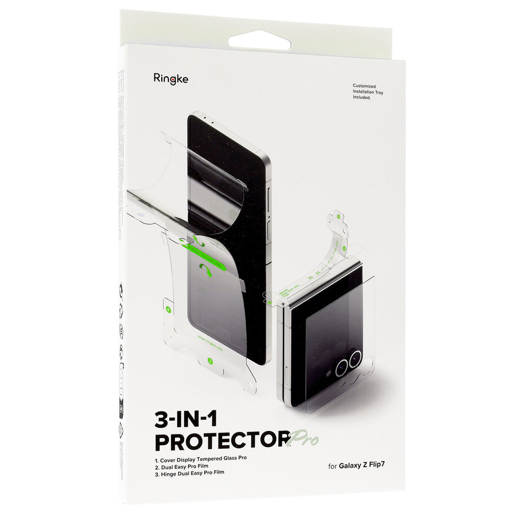 ACHTUNG: Das gehärtete Glas ist für den äußeren Teil des Bildschirms vorgesehen, während die Folie für den Hauptbildschirm gedacht ist. Zusätzlich hat der Hersteller eine flexible Schutzfolie beigefügt, die besonders empfindliche Stellen wie den Scharnierbereich schützt.