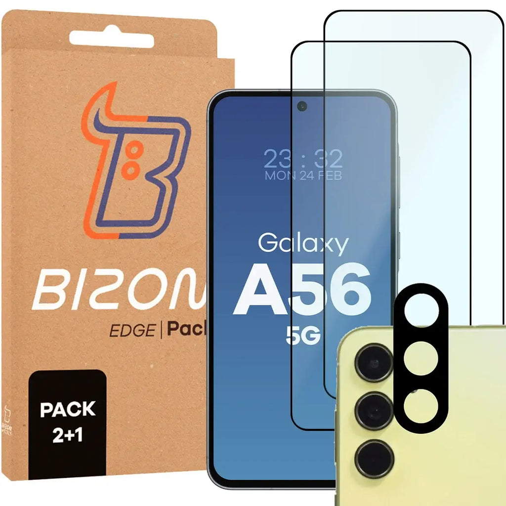 Bizon Glass Edge 2 Pack, zusätzlich zu 2 Stück gehärtetes Glas für das Display und 1 Stück Kameraschutz, enthält: