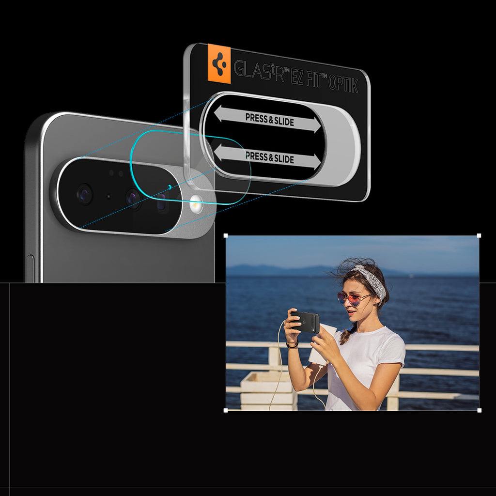 Das Glas ist mit einer starken Klebeschicht versehen, die dafür sorgt, dass das Glas fest am Gerät haftet. Das Glas lässt sich dank des speziellen Applikationsrahmens "Ez Fit" extrem einfach installieren. Er ist perfekt zugeschnitten und ermöglicht eine genaue Positionierung des Glases, so dass es perfekt an der Kamera Ihres Telefons haftet. Zum Schluss wischen Sie sie mit einem trockenen Tuch ab, um Flecken und Fingerabdrücke zu entfernen, die sich während der Installation gebildet haben könnten, und genießen Sie einen modernen und stilvollen Schutz.
