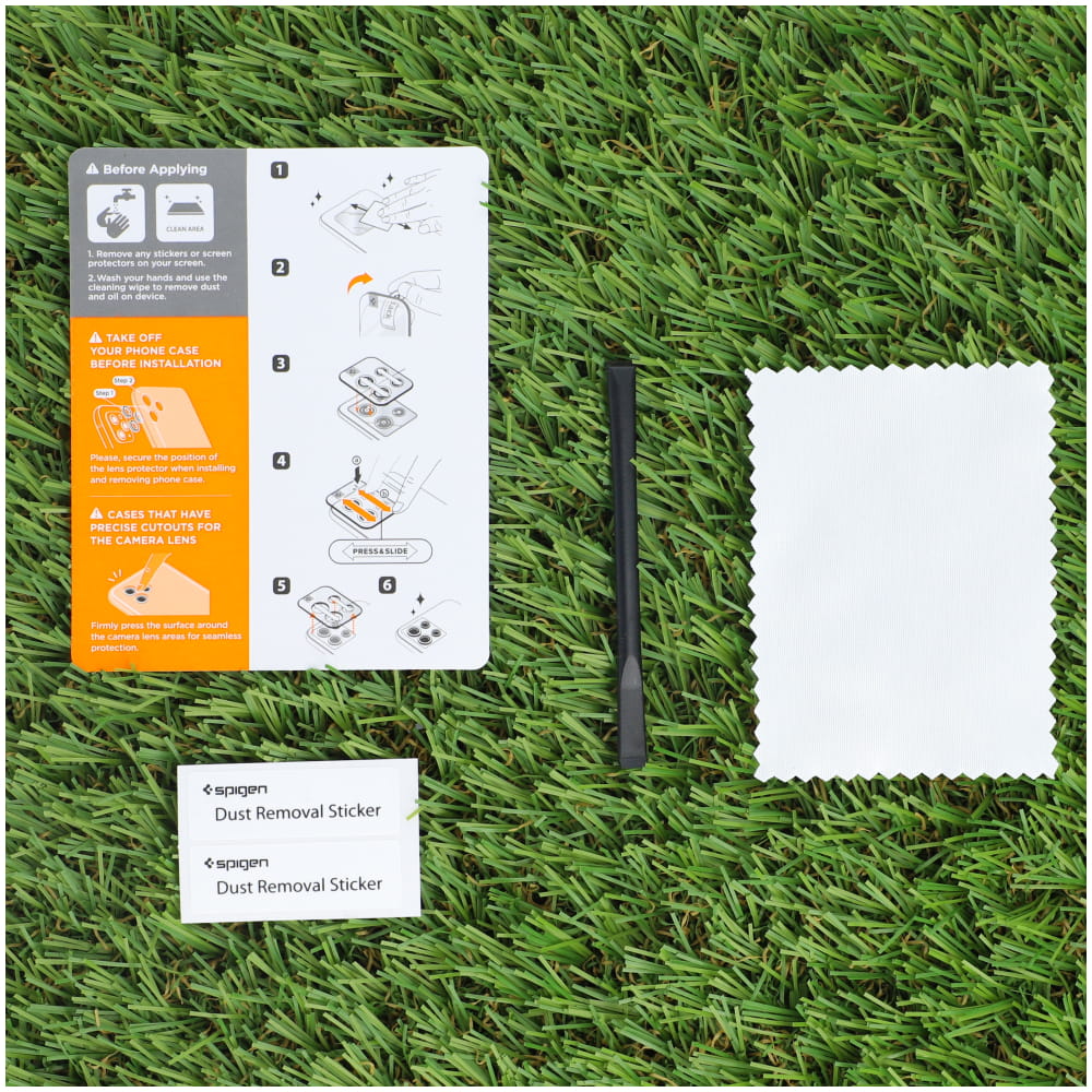 Jedes Paket enthält ein Anwendungskit, mit dem Sie das Glas richtig montieren können. Der Hersteller hat im Kit Spigen Glas.tR Ez Fit Optik Pro 2-Pack-Modell enthalten: