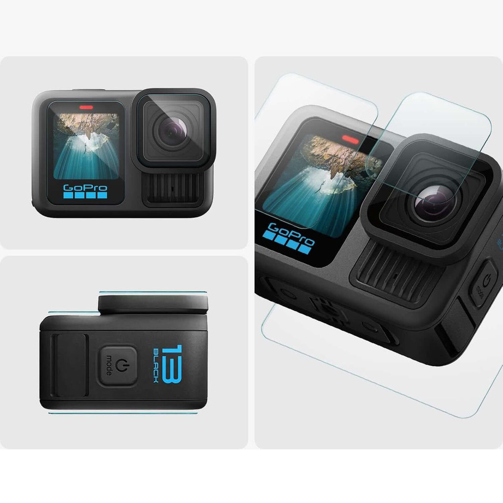 Das innovative Schutzset der Marke Spigen wurde speziell für GoPro-Kameras entwickelt. Es enthält zwei Glas.tR Slim-Schutzgläser für das kleinere Display, zwei für das Objektiv der Action-Kamera sowie zwei für das Hauptdisplay. Dieses Set ist daher ein unverzichtbares Zubehör für alle, die sowohl verlustfreie Aufnahmequalität als auch erstklassigen Schutz ihres Geräts schätzen. Die Schutzgläser beeinträchtigen nicht die Nutzung von Zubehör wie GoPro Housing oder Media Mod.