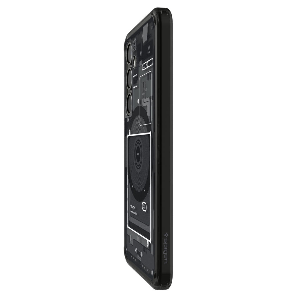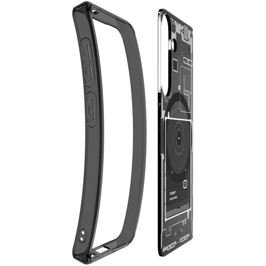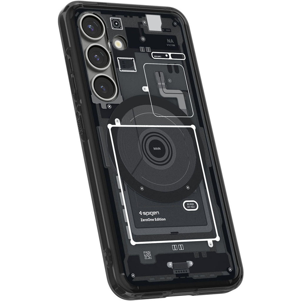 Herstellerfarbe: Zero One Black (Rauchfarben/grau mit einem aufgedruckten Motiv, das die interne Anordnung der Smartphone-Komponenten wieder)