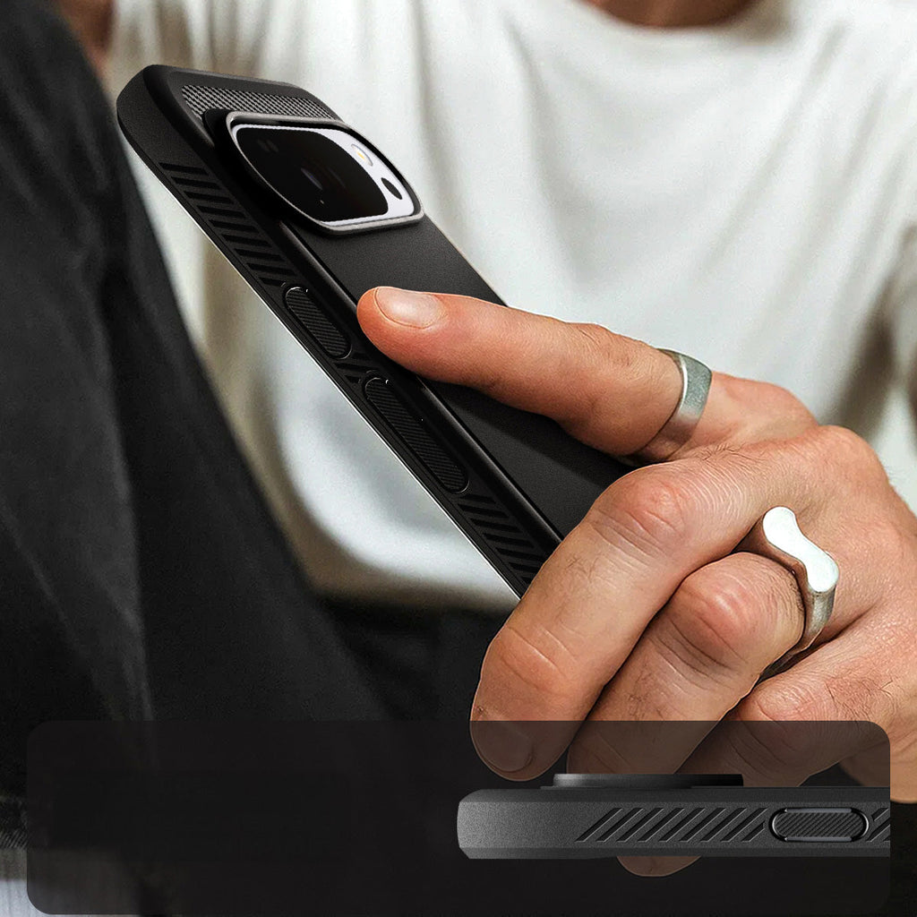 Die Originalhülle von Spigen aus der Rugged Armor Mag-Serie ist eine verbesserte Version einer Hülle, die bei den Käufern sehr beliebt ist und von den Nutzern sehr gut bewertet wird. Die Hybridabdeckung besteht aus einer Kombination aus flexiblem Thermo-Polyurethan und starkem Polycarbonat und ist mit zusätzlichen Schichten aus stoßfestem Schaumstoff in den Ecken und anderen empfindlichen Bereichen ausgestattet, um einen noch besseren Schutz im täglichen Gebrauch zu bieten.