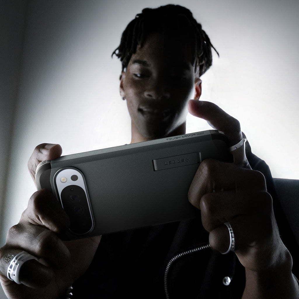 Das Hybridgehäuse kombiniert eine innere Schicht aus thermoplastischem Polyurethan mit einer äußeren Platte aus hartem Polycarbonat. Zusätzlich wurde der Innenraum mit einer dünnen Schicht aus stoßdämpfendem Schaumstoff ergänzt. Trotz der gepanzerten Konstruktion behält das Gehäuse ein elegantes Aussehen und macht im täglichen Gebrauch eine gute Figur.