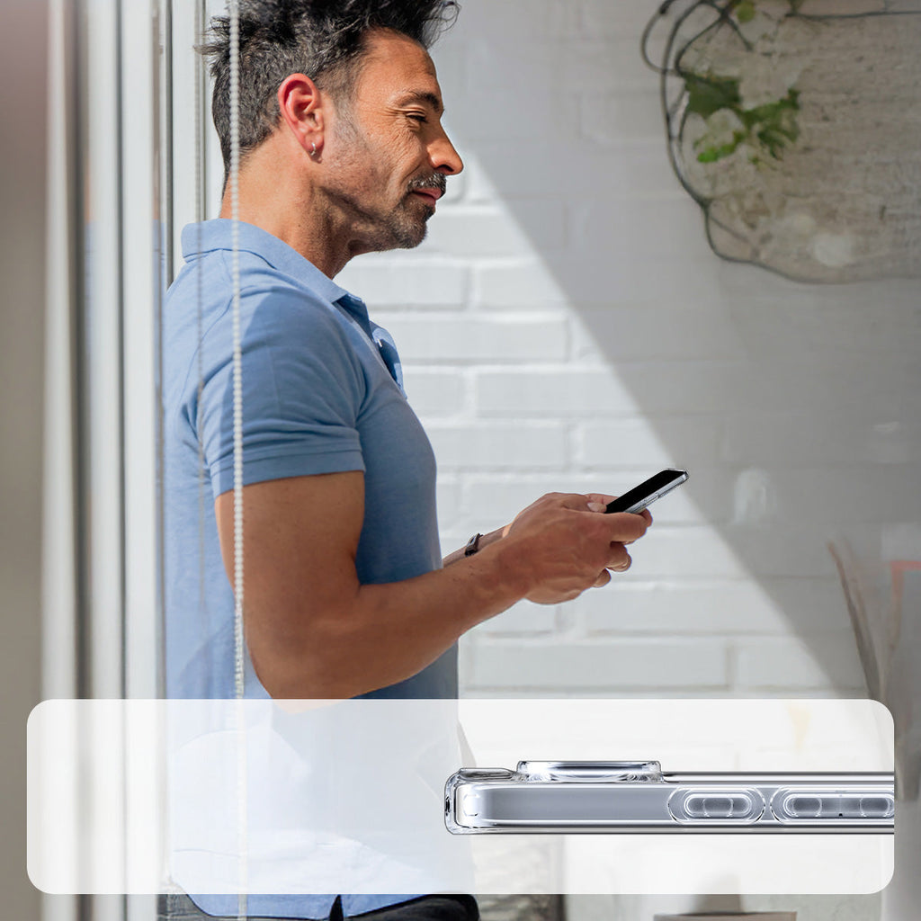 Diese ultraleichte und schlanke Hülle verdickt Ihr Gerät nur unwesentlich und bietet Schutz vor Kratzern im Alltag. Sie schützt die Rückseite und die Seiten Ihres Smartphones effektiv, während die leicht überstehenden Kanten den Kamerabereich und das Display vor Kratzern auf flachen Oberflächen schützen. Das Display bleibt vollkommen sicher, wenn Sie das Telefon ablegen. So können Sie ungehindert Stummschaltgesten verwenden und müssen sich keine Sorgen um Ihre Linsen machen, wenn Sie das Telefon auf dem Schreibtisch ablegen.