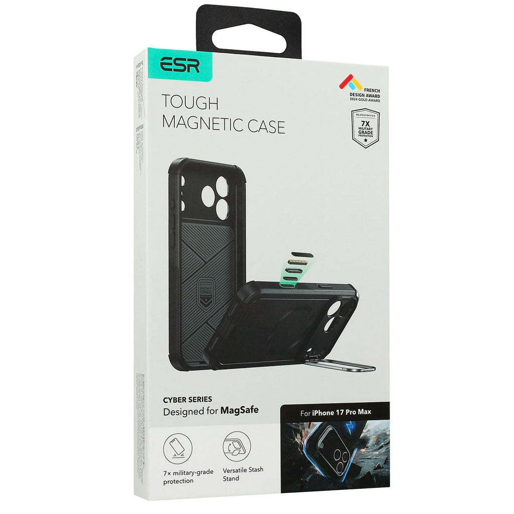 Das Cyber Tough Case Kickstand MagSafe von ESR ist Gewinner des renommierten French Design Award 2024 in Gold und zeichnet sich durch sein innovatives Design aus. Die dreischichtige Konstruktion kombiniert eine weiche, stoßdämpfende Polsterung (Poron) mit einer robusten TPU-Schicht und einer harten PC-Beschichtung, wodurch das Telefon vor Stürzen, Stößen und Kratzern geschützt ist. Das schlanke Design mit Ständerfunktion sorgt für Funktionalität beim Ansehen von Filmen oder bei Videoanrufen, und die erhöhten Kanten um die Objektivabdeckung schützen die Kamera.