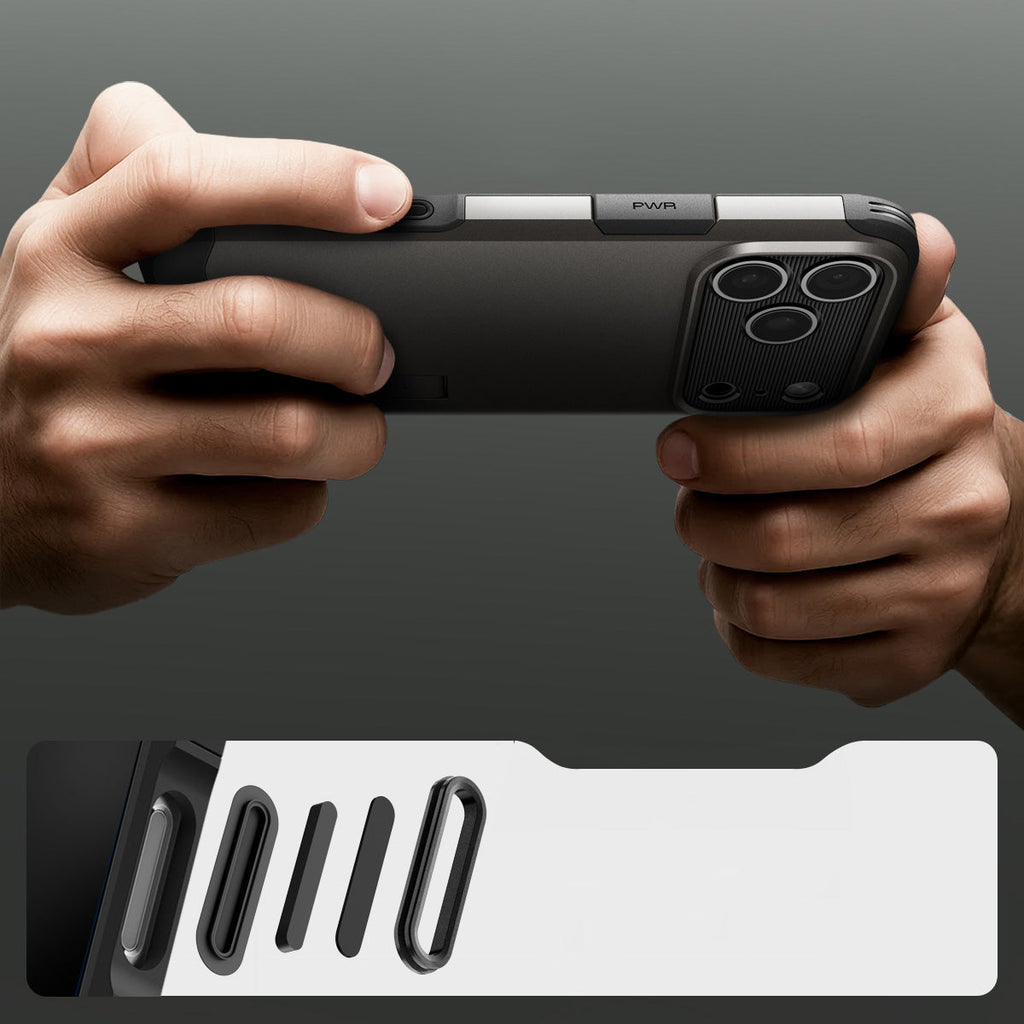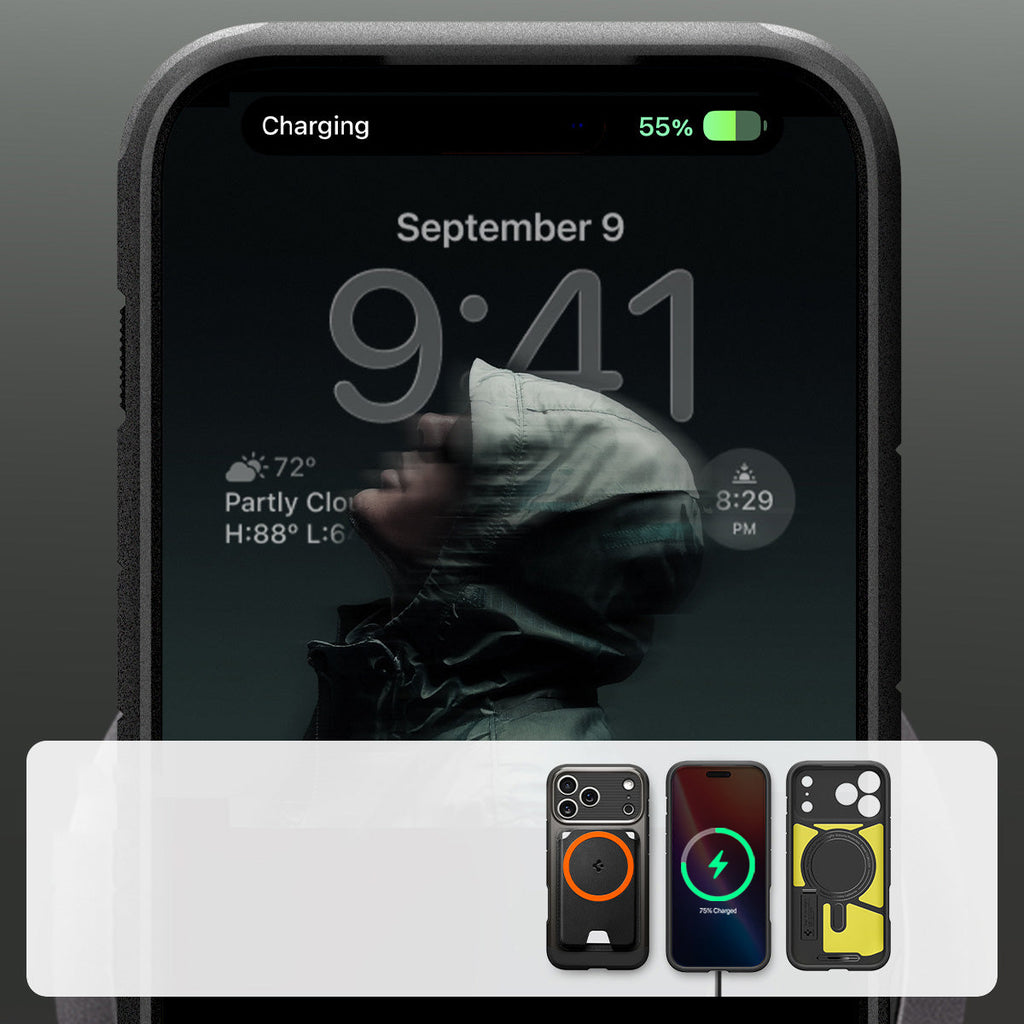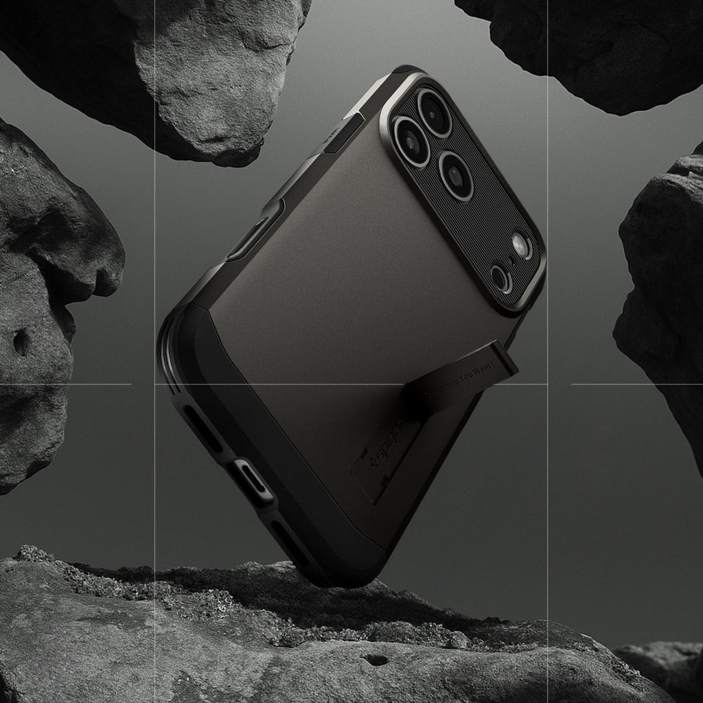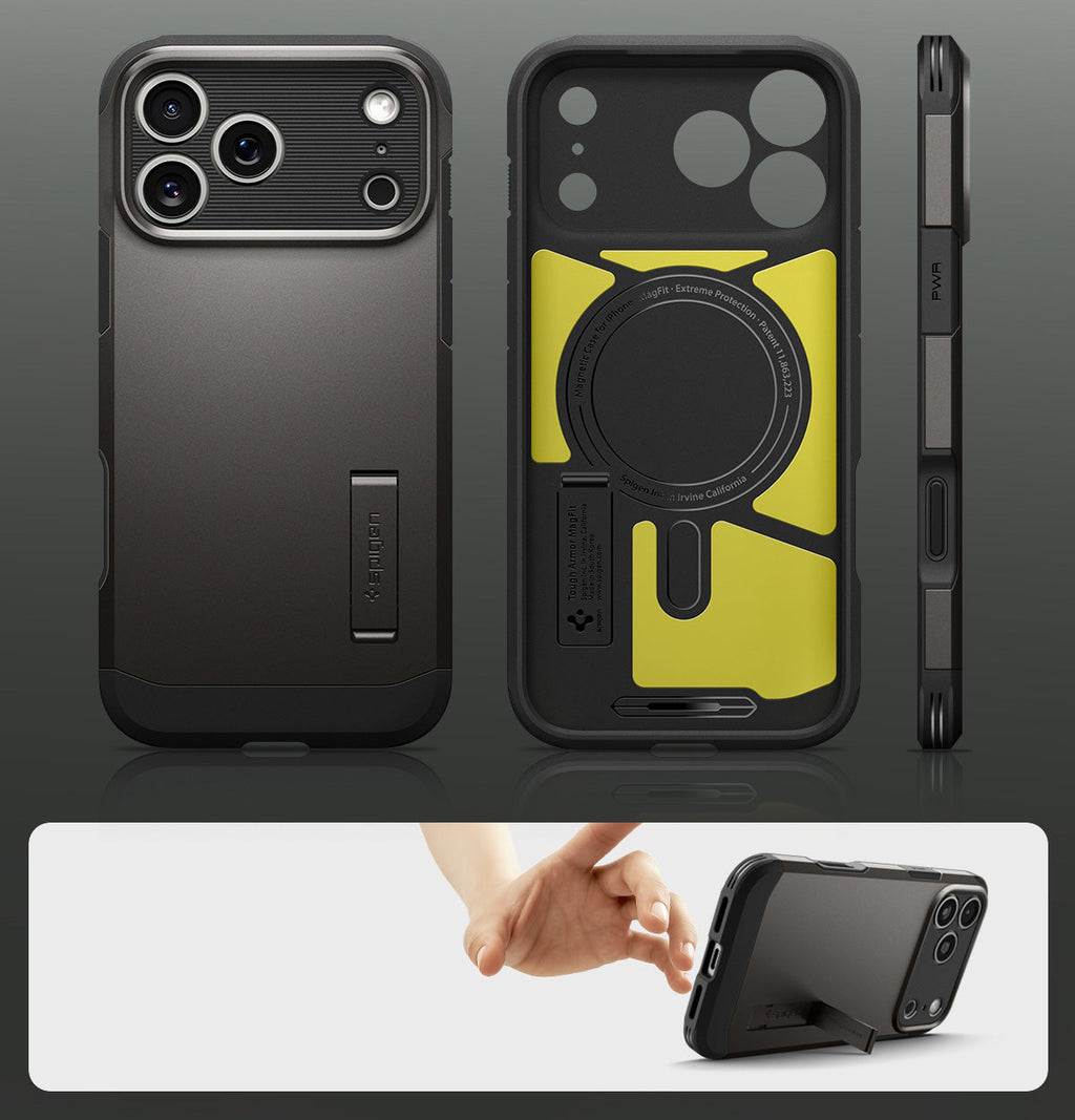 Ein großartiges Produkt aus der Tough Armor Mag T-Serie von Spigen, das sich durch hohe Strapazierfähigkeit auszeichnet und dank des eingebauten Magnetrings, der das Hülle mit dem MagSafe-Zubehör kompatibel macht, sehr komfortabel ist. Darüber hinaus ermöglicht der integrierte KickStand im ausgeklappten Zustand eine horizontale Positionierung des Telefons, um das Surfen in den Medien komfortabler zu gestalten.