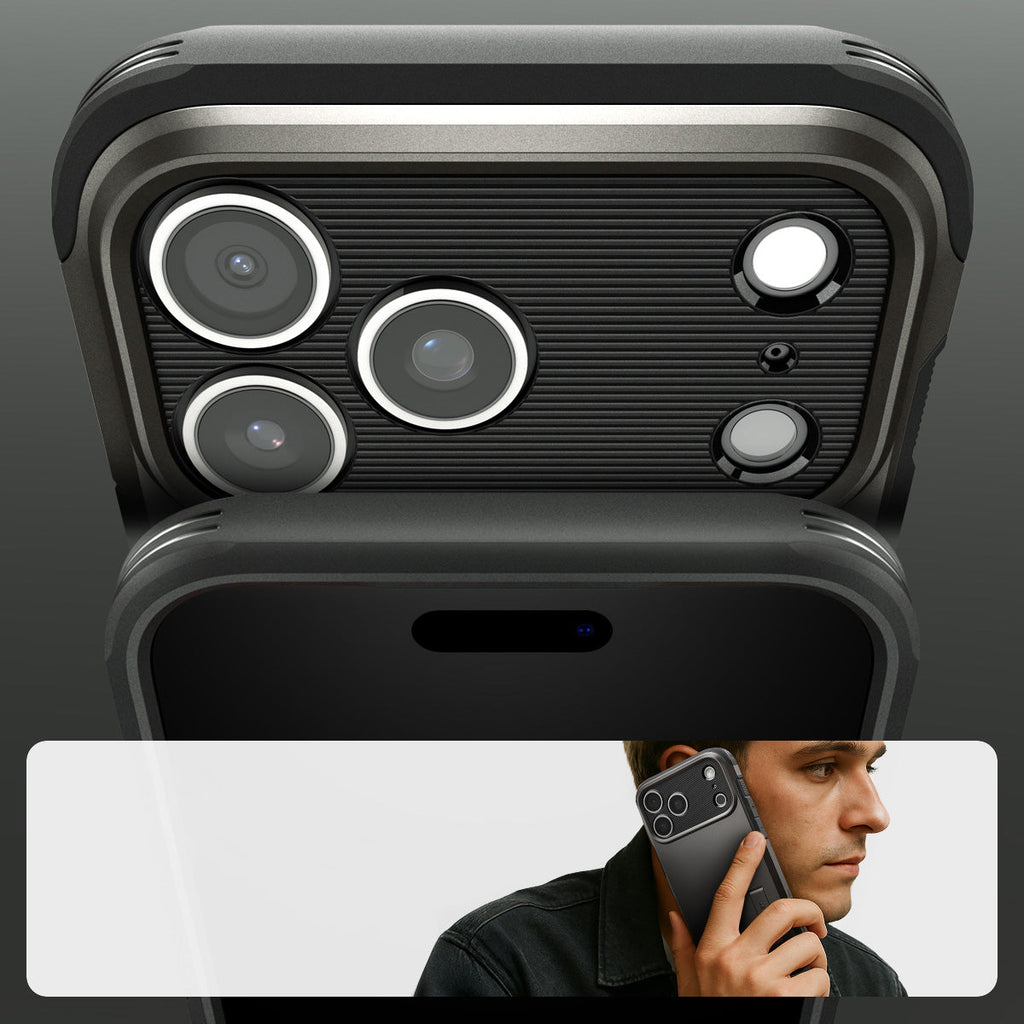 Das Hybridgehäuse kombiniert eine innere Schicht aus thermoplastischem Polyurethan mit einer äußeren Platte aus hartem Polycarbonat. Zusätzlich wurde der Innenraum mit einer dünnen Schicht aus stoßdämpfendem Schaumstoff ergänzt. Trotz der gepanzerten Konstruktion behält das Gehäuse ein elegantes Aussehen und macht im täglichen Gebrauch eine gute Figur.