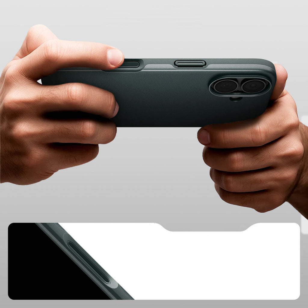 Die Thin Fit Mag-Hybridhülle von Spigen ist eine der dünneren und leichteren Hüllen des Unternehmens, die so konzipiert ist, dass sie Ihr Gerät nicht unnötig aufbläht. Das Gehäuse besteht aus einer Kombination aus Thermopolyurethan und Polycarbonat, so dass es trotz des schlanken Designs einen wirksamen Schutz vor Kratzern und Schmutz im täglichen Gebrauch bietet. Das ergonomische Design sorgt dafür, dass das Ganze gut in der Hand liegt und einen bequemen und sicheren Griff bietet. Dies ist eine großartige Hülle für alle, die ein minimalistisches und asketisches Design schätzen. Dank des integrierten Magnetrings ist die Hülle mit dem MagSafe-Zubehör kompatibel.