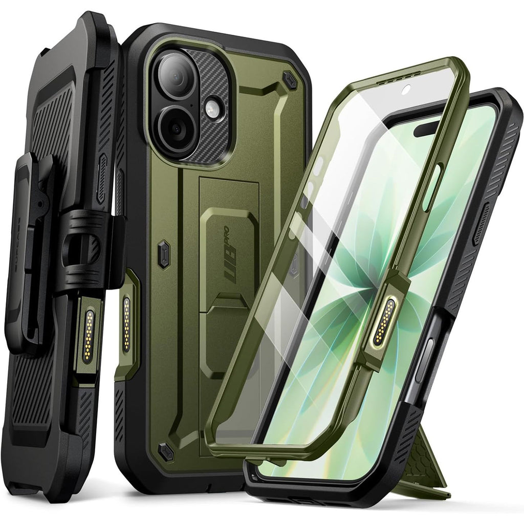Das Originalgehäuse der Marke Supcase aus der Unicorn Beetle Pro Serie aus einer Kombination von stoßabsorbierendem Thermopolyurethan und starkem Polycarbonat. Darüber hinaus verfügt es über einen integrierten ausklappbaren KickStand, eine Frontblende (mit integriertem Bildschirmschutz) und ein Holster mit schwenkbarem Holster, mit dem sich das Ganze zum Beispiel an einem Gürtel befestigen lässt.