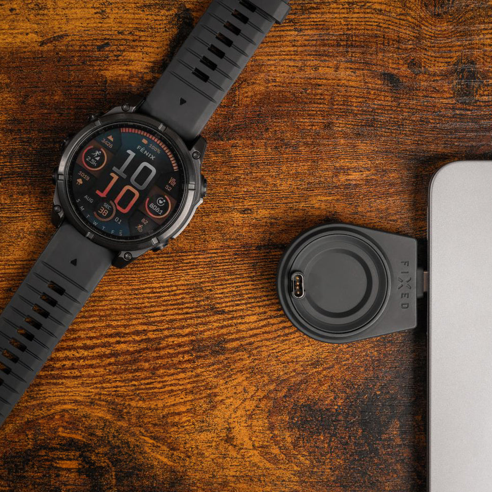 Das Fixed USB-C Charging Adapter funktioniert ohne Aufwand mit zahlreichen Garmin-Uhren – von Fenix bis Venu. Der drehbare Pin-Ring kann einfach an verschiedene Modelle angepasst werden, inklusive Varianten mit Elevate 5 Sensor. Dank des kompakten Designs ist das Zubehör im Alltag oder unterwegs immer schnell zur Hand. Der verlängerte USB-C-Anschluss macht das Anschließen an Laptop, Powerbank oder Ladestation besonders einfach. Uhr anlegen und die Ladung startet – ganz unkompliziert.