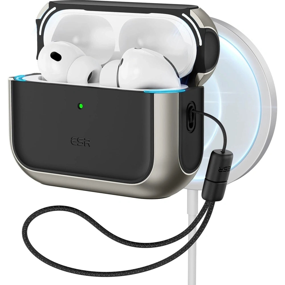 Das Gehäuse ist mit MagSafe-Ladegeräten kompatibel. Das bedeutet, dass Ihre Kopfhörer mit Ladegeräten und anderen MagSafe-Geräten verwendet werden können, ohne dass sie aus der Tasche genommen werden müssen.