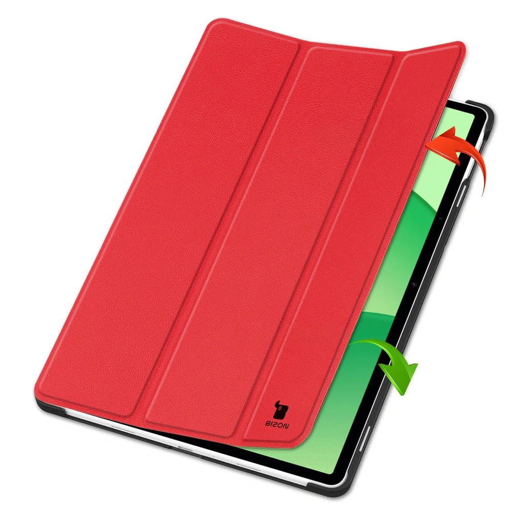 Die Bizon-Hülle aus der Tab Croc-Serie ist eine Hybridlösung zum Schutz Ihres Geräts mit ihrem hervorragenden Design! Der Rahmen und die Rückseite des Geräts sind aus hartem Polycarbonat gefertigt, um die Ecken des Tablets besser zu schützen. Die Innenseite der Klappe ist mit Mikrofaser gefüttert, um Ihr Tablet fest an seinem Platz zu halten, und die Außenseite der Tasche ist mit Kunstleder überzogen, um einen eleganten und stilvollen Touch zu verleihen. Das Etui zeichnet sich durch ein dezentes Logo in Form eines Büffelkopfes aus.