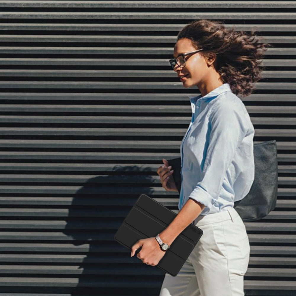Die Klappe verfügt über eine weiche Innenauskleidung, die das Risiko von Kratzern auf dem Bildschirm verringert, sowie über eine Funktion zum Aktivieren und Deaktivieren des Bildschirms. Zudem verfügt die Hülle über ein integriertes Stiftfach*, sodass du deinen Eingabestift stets griffbereit hast.