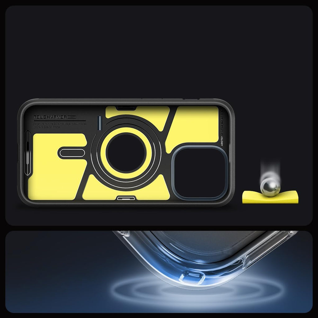 Im Inneren der Hülle befindet sich ein Magnetring was Kompatibilität mit Zubehör aus Serie Apple MagSafe bietet. Sie können das Zubehör unbegrenzt nutzen ohne Die Hülle abnehme zu müssen.