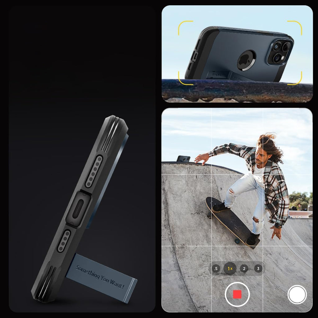 Ein großartiges Produkt aus der Tough Armor Mag-Serie von Spigen, das sich durch hohe Strapazierfähigkeit auszeichnet und dank des eingebauten Magnetrings, der das Hülle mit dem MagSafe-Zubehör von Apple kompatibel macht, sehr komfortabel ist. Darüber hinaus ermöglicht der integrierte KickStand im ausgeklappten Zustand eine horizontale Positionierung des Telefons, um das Surfen in den Medien komfortabler zu gestalten.
