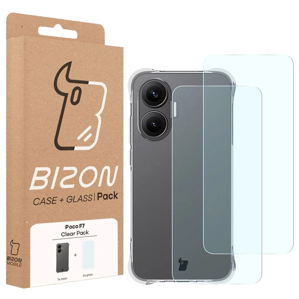 Bizon Case Clear Pack, zusätzlich zu 1 Stück Handyhülle und 2 Stück gehärtetes Glas für das Display, enthält: