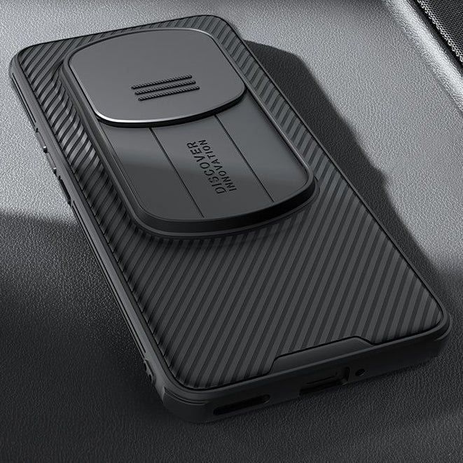 Die originelle, robuste Hülle aus der CamShield-Reihe Pro von Nillkin ist ein Panzer für Ihr Handy aus verschleißfestem Polycarbonat, der die Auswirkungen alltäglicher Widrigkeiten, wie z. B. die Schwerkraft selbst, die Ihr Smartphone zu Boden zieht, oder Ihre Hände, die voller Löcher sind, minimiert. Darüber hinaus schützt sie sowohl die Rückseite des Geräts als auch die Kamera selbst doppelt.
